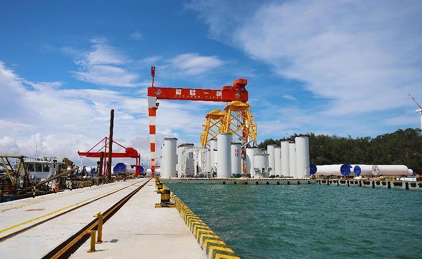 泊位2:配置一台1200T龙门吊, 用于海上风塔、导管架、单管桩等重型结构总组建造及装船出运,龙门吊宽度90米,高度76米,轨道长425米。